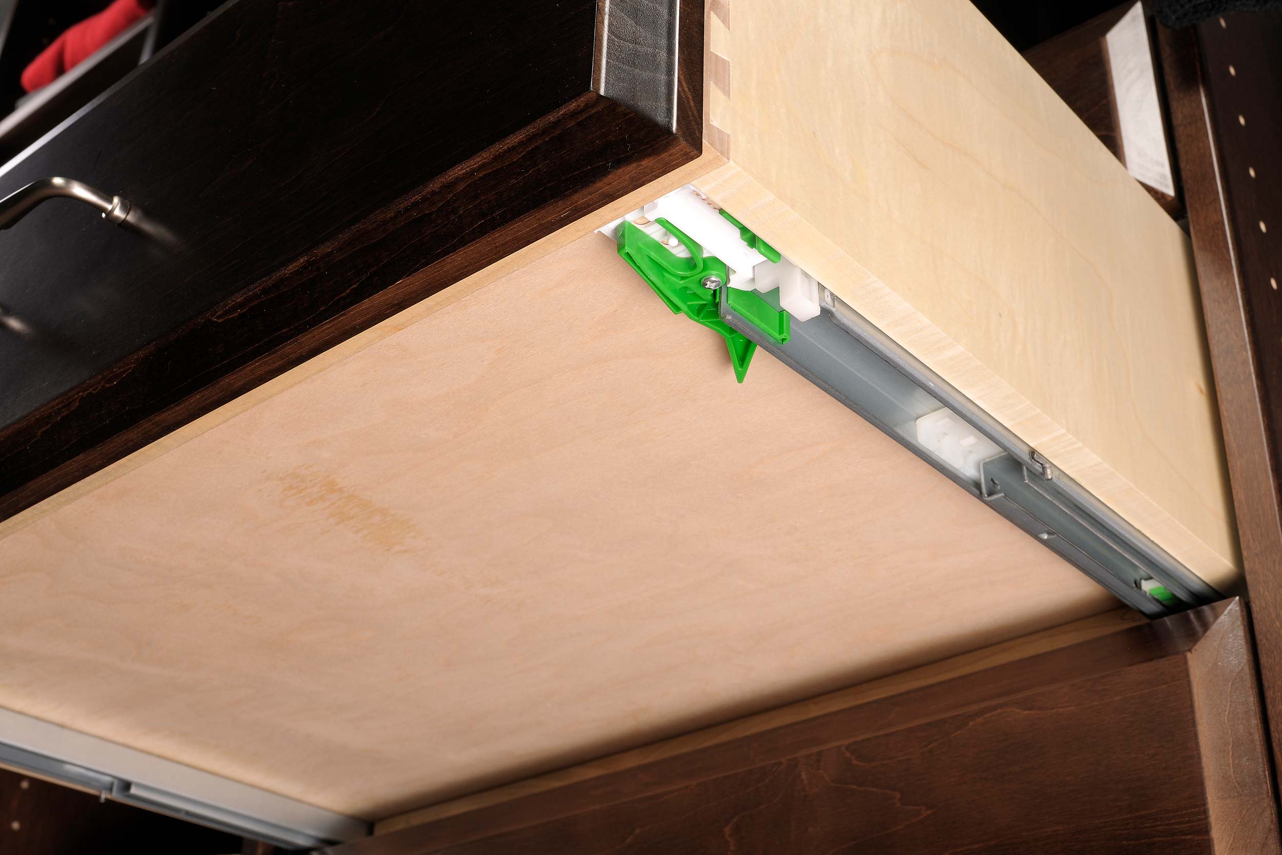 Our soft close drawer slides are under-mounted, concealing them on the bottom of the drawer. This allows the focus to be on the beautiful solid wood drawers. All drawers come fully assembled and simply click into place after slides are attached.